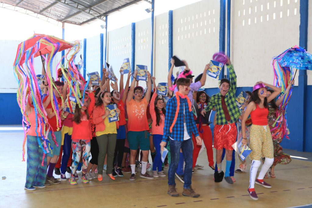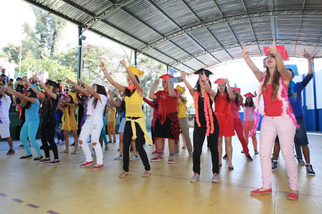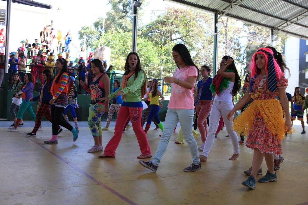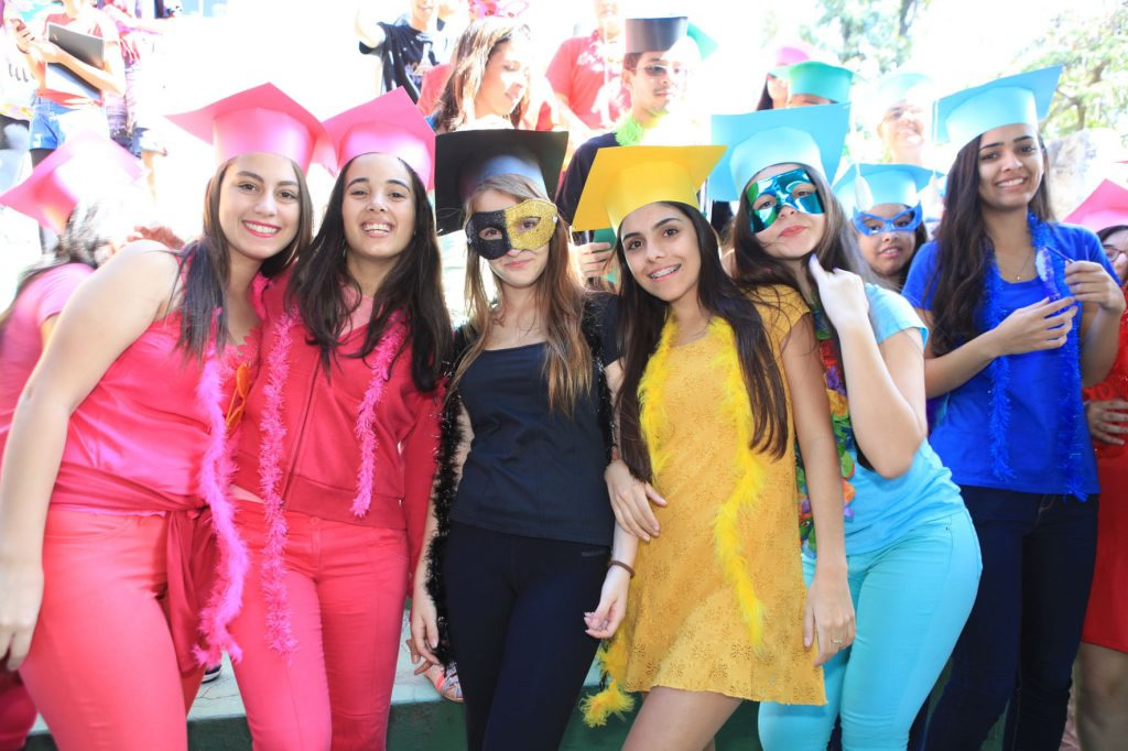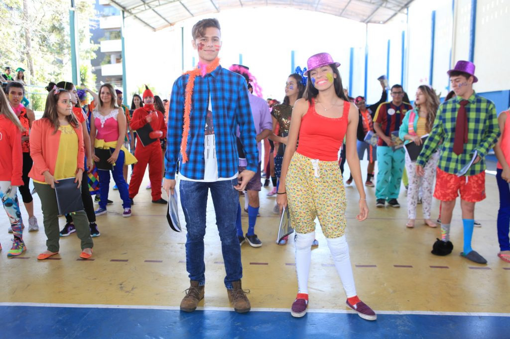 A coordenadora da 3ª série integrada, Júnia Batista Tavares Marcossi, explicou que cada turma recebeu uma letra musical para transformá-la em paródia. Isso criou momentos divertidíssimos, com muita música e tudo muito colorido. Ainda segundo a coordenadora, o evento acontece uma vez por mês e já faz parte da rotina escolar. A aluna Giovana Biron, 17, identifica-se mais com a área de Humanas, mas não decidiu ainda o que cursar. Ela comentou que o Dia V é muito importante para relaxar, arejar a mente, fortalecer os laços de amizades e uma ótima oportunidade também de apresentar talentos. “Tenho uma rotina de estudos muito puxada, então atividades como estas nos proporcionam momentos felizes e prazerosos. A minha turma produziu uma paródia muito divertida, ensaiamos a coreografia… nossa, foi muito legal mesmo!”, enfatiza o aluno Samuel Abreu, 17, que pretende cursar medicina.