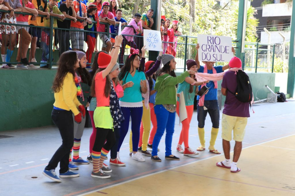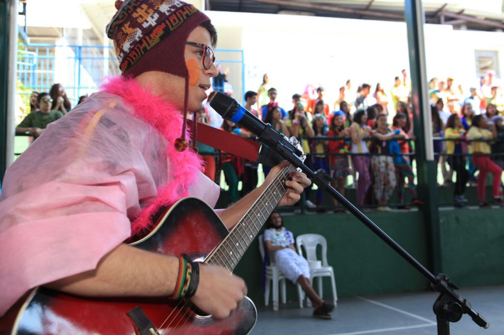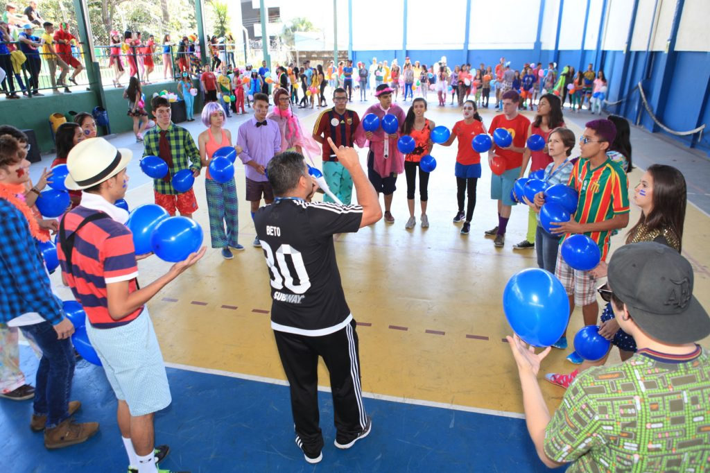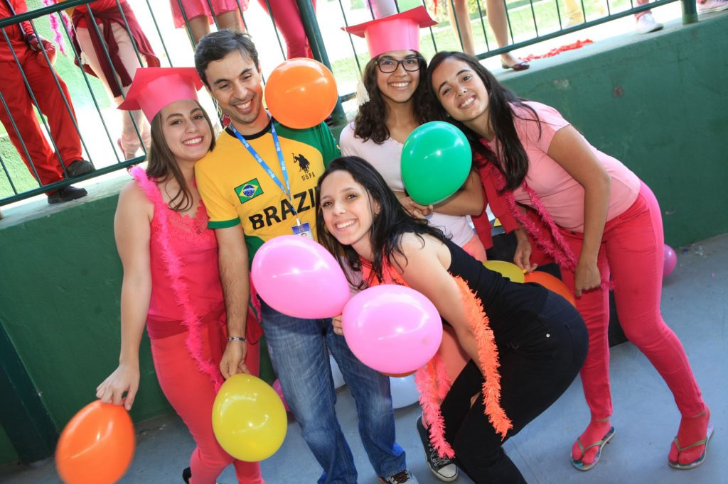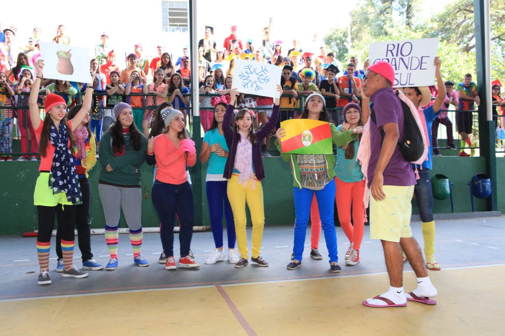 A coordenadora da 3ª série integrada, Júnia Batista Tavares Marcossi, explicou que cada turma recebeu uma letra musical para transformá-la em paródia. Isso criou momentos divertidíssimos, com muita música e tudo muito colorido. Ainda segundo a coordenadora, o evento acontece uma vez por mês e já faz parte da rotina escolar. A aluna Giovana Biron, 17, identifica-se mais com a área de Humanas, mas não decidiu ainda o que cursar. Ela comentou que o Dia V é muito importante para relaxar, arejar a mente, fortalecer os laços de amizades e uma ótima oportunidade também de apresentar talentos. “Tenho uma rotina de estudos muito puxada, então atividades como estas nos proporcionam momentos felizes e prazerosos. A minha turma produziu uma paródia muito divertida, ensaiamos a coreografia… nossa, foi muito legal mesmo!”, enfatiza o aluno Samuel Abreu, 17, que pretende cursar medicina.