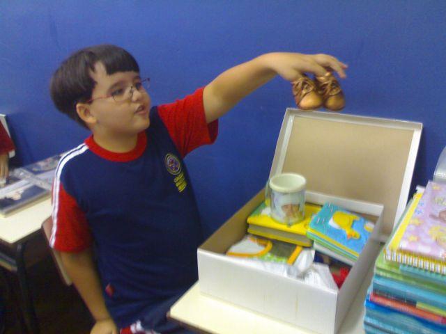 Aprendemos que a história é construída a partir de instrumentos, registros e objetos que são chamados de ‘fontes históricas’. Os alunos do 3º ano fizeram uma exposição com as fontes históricas que fazem parte da nossa vida como, brinquedos, certidão de nascimento, fotos, roupas, entre outras.