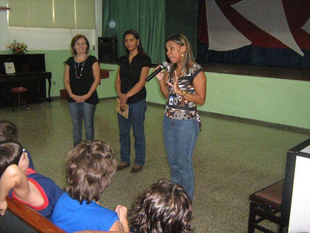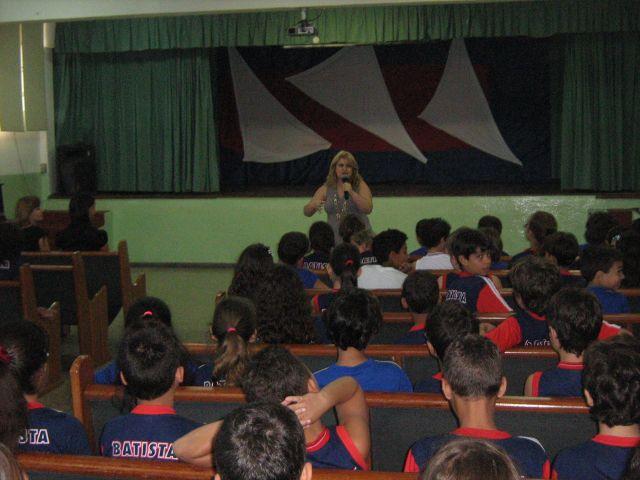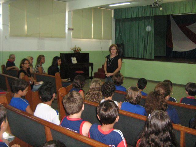 As autoras passaram por uma verdadeira sabatina. Os alunos queriam saber como é a emoção de ter um livro publicado, a escolha do título, o tempo que se leva entre escrever e publicar e outras tantas perguntas.