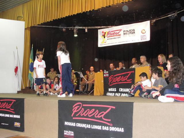 Os alunos do 5º ano do Colégio Batista receberam, no dia 29 de maio, o certificado de conclusão no Programa Educacional de Resistência às Drogas e à Violência – Proerd.