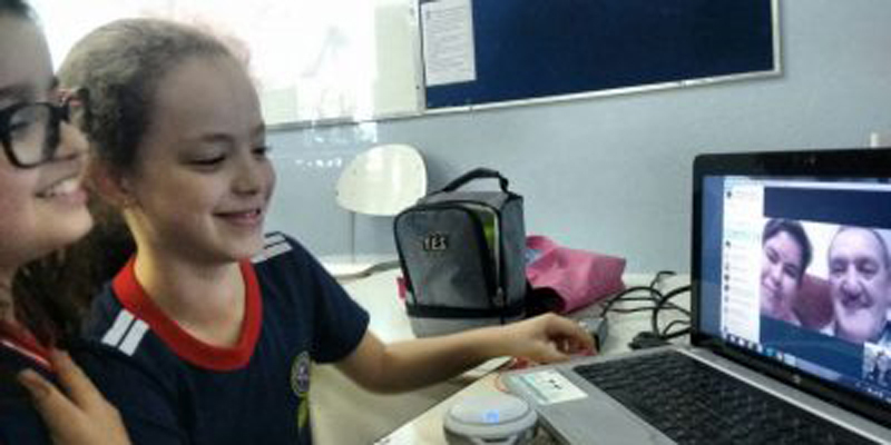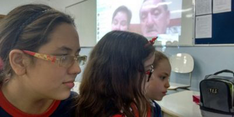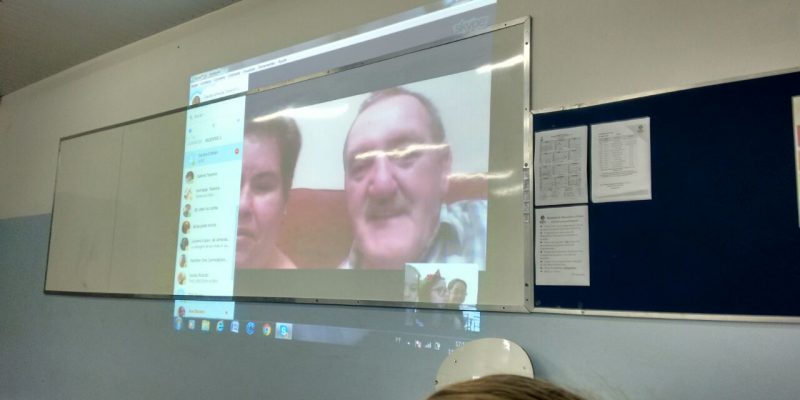 Para encerrar o semestre a professora proporcionou aos alunos uma conversa via “Skype” com um casal de Gales no Reino Unido. Os alunos ficaram encantados e animados de praticarem o que aprenderam nas aulas.
