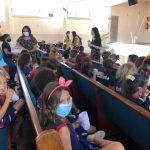 De acordo com as professoras, Rosimeire Mello e Míriam de Souza, do 2º ano A e B, as crianças ficaram atentas o tempo todo à nutricionista Flaviane Peixoto, responsável por exemplificar o tema de forma lúdica e dinâmica. “O resultado foi muito bom. Para contextualizar o tema, Flaviane contou a história ‘A viagem da sementinha’ e ilustrou o ciclo da planta, que é uma semente de milho. Ao final da conversa, foi servido aos estudantes pipoca, fazendo alusão ao tema abordado”, diz Meire.