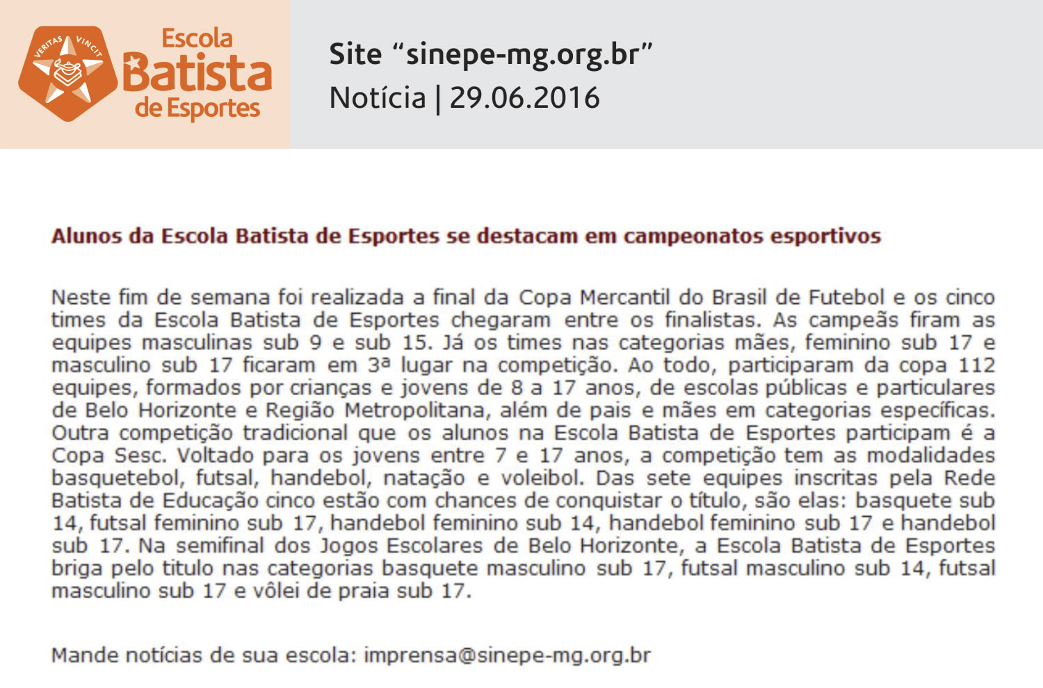 Alunos da Escola Batista de Esportes se destacam em campeonatos esportivos (Sinep MG)
