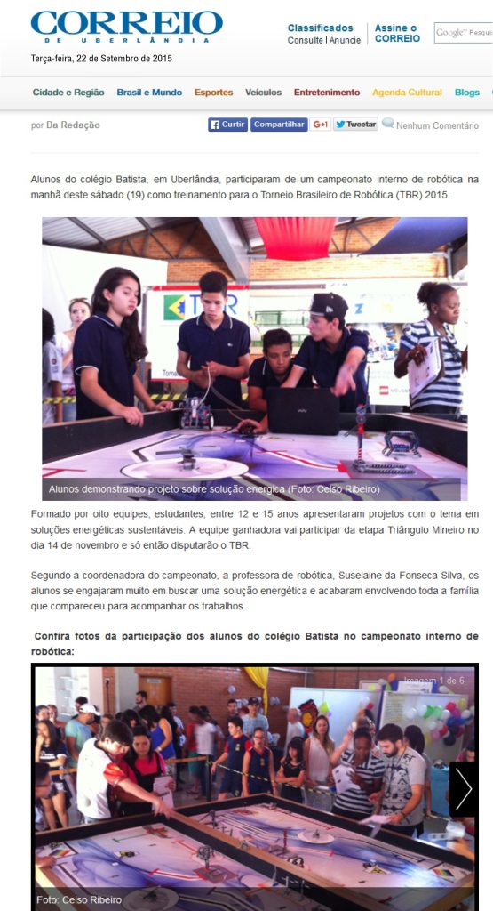 Alunos do Batista participam de campeonato interno de robótica (Correio Uberlândia)