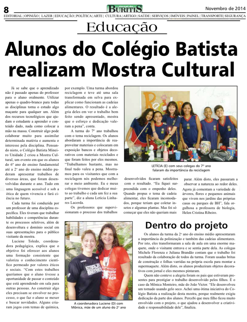 Alunos do Colégio Batista realizam Mostra Cultural(Jornal do Buritis)