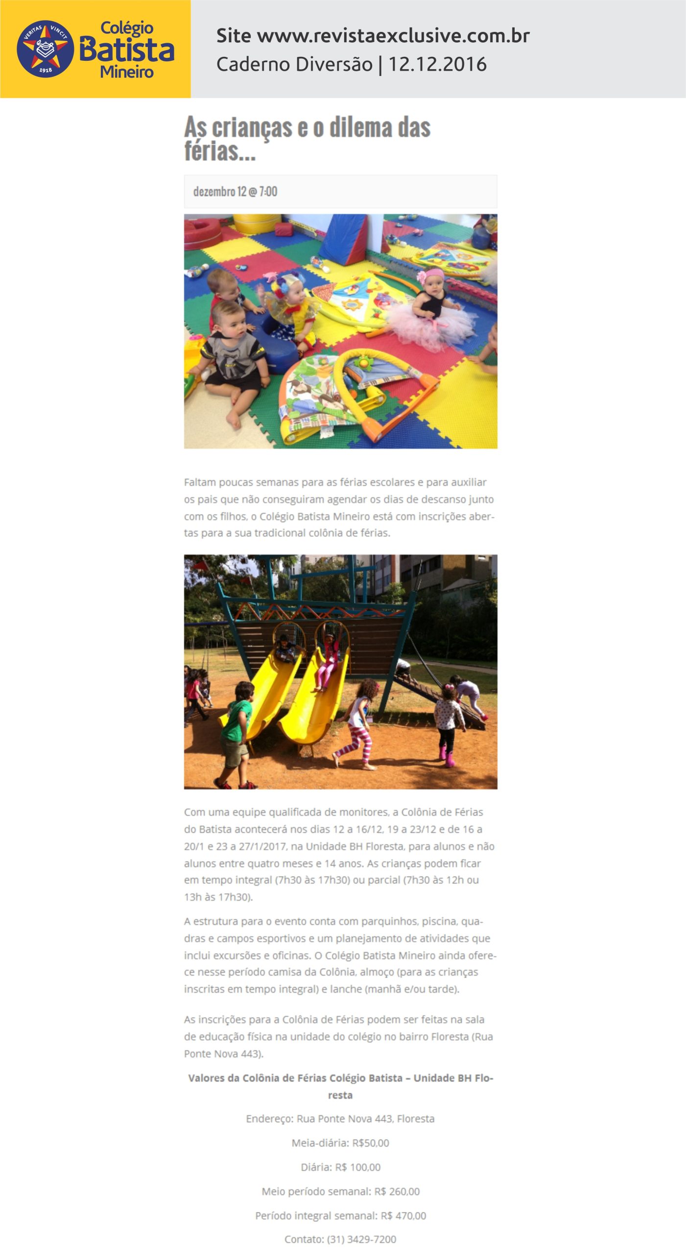 As crianças e o dilema das férias (site “BH Eventos”)