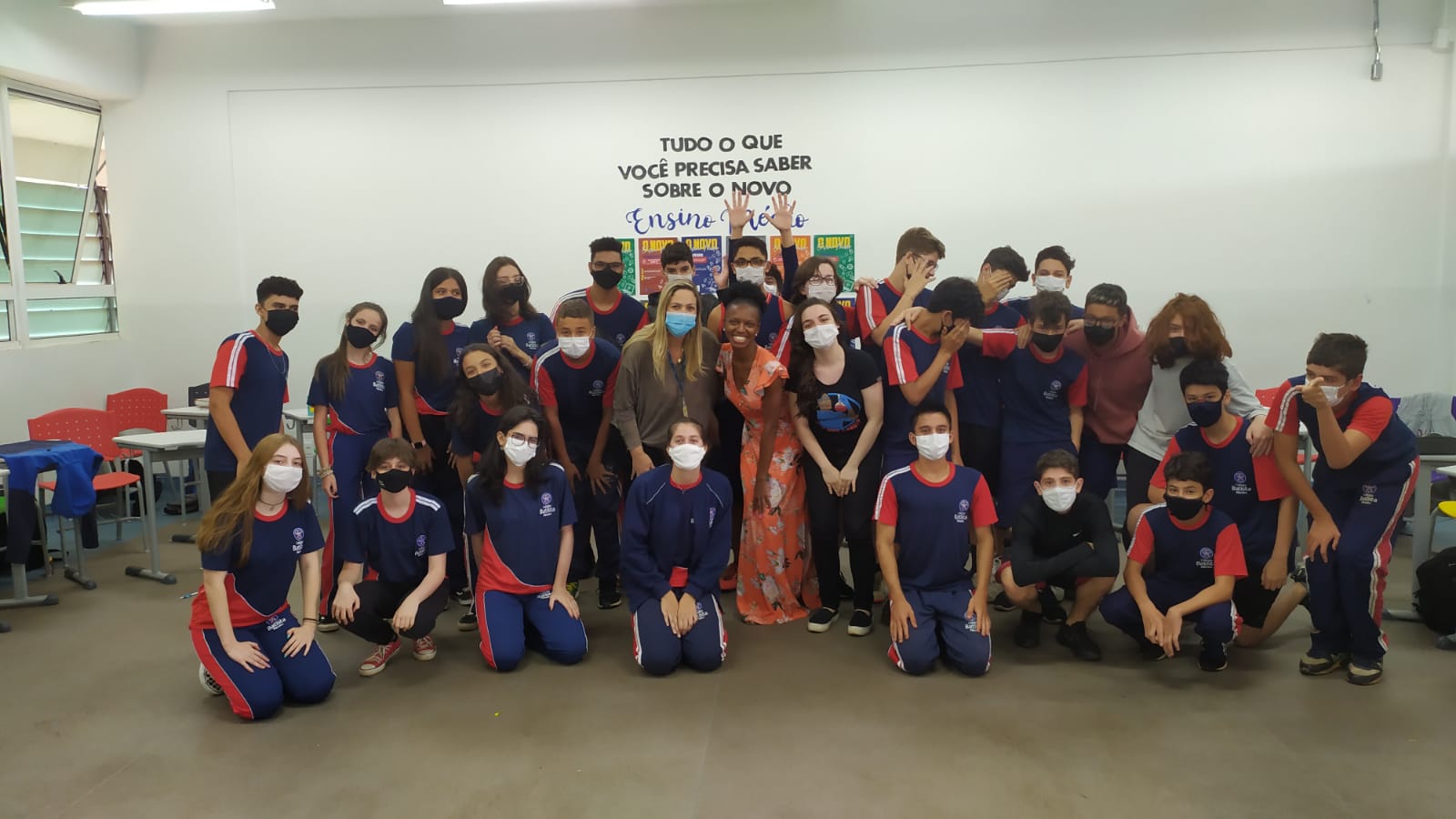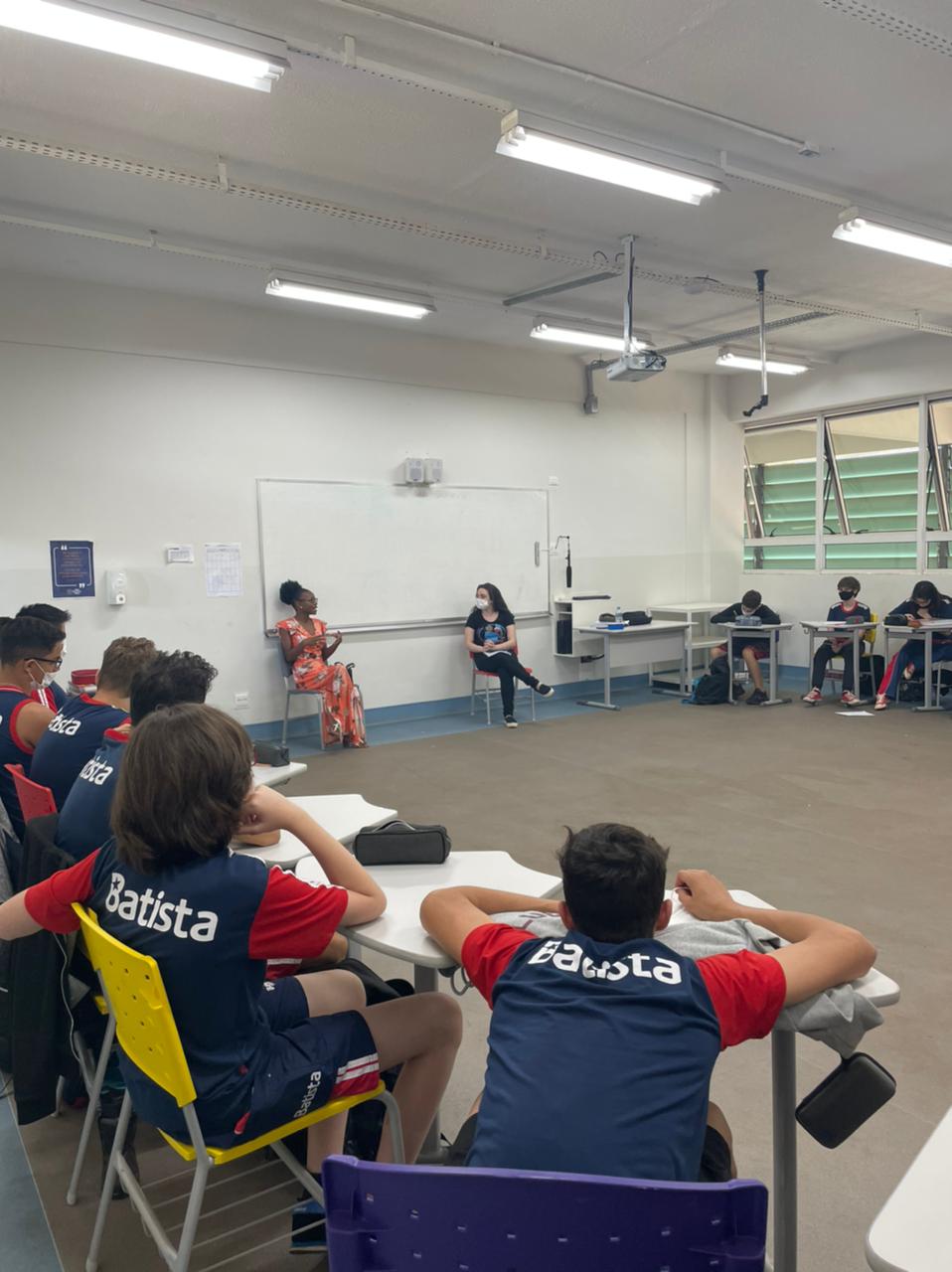 Atividade dos estudantes do 9º ano da Unidade Alphaville contou com a participação da ex-estudante do Batista Flora Ngunga
