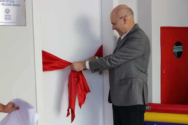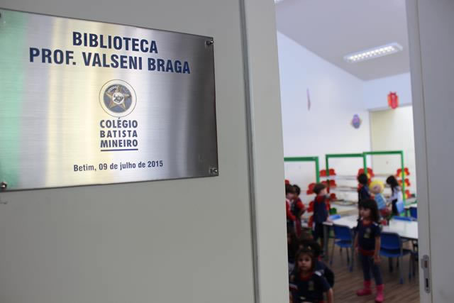 A biblioteca da unidade infantil é um lugar aconchegante, inaugurado na tarde desta última quinta-feira, 9. O nome escolhido foi em homenagem ao diretor-geral da Rede Batista Mineiro de Educação (RBE), professor Valseni Braga, como reconhecimento por sua nobre contribuição ao longo desses anos. De acordo com o diretor da unidade Betim, pastor José Paulo da Silva, é uma grande responsabilidade estimular o hábito da leitura. “Acredito que proporcionar às crianças uma experiência prazerosa com os livros é um incentivo significativo à leitura e um espaço adequado vai enriquecer ainda mais o aprendizado delas”, destaca.