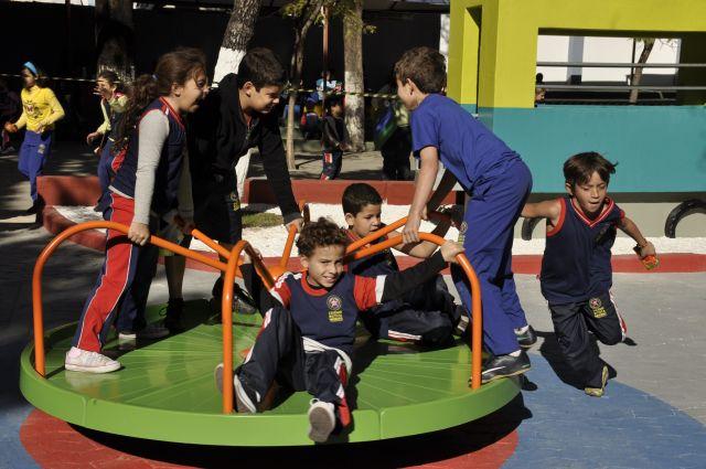 O momento Cívico dessa segunda-feira, 14 de junho, nas Séries Iniciais, foi de festa para os alunos do Maternal ao 5º ano. Após o louvor e a execução do Hino Nacional e do CBM, as crianças foram se divertir no novo Parquinho.