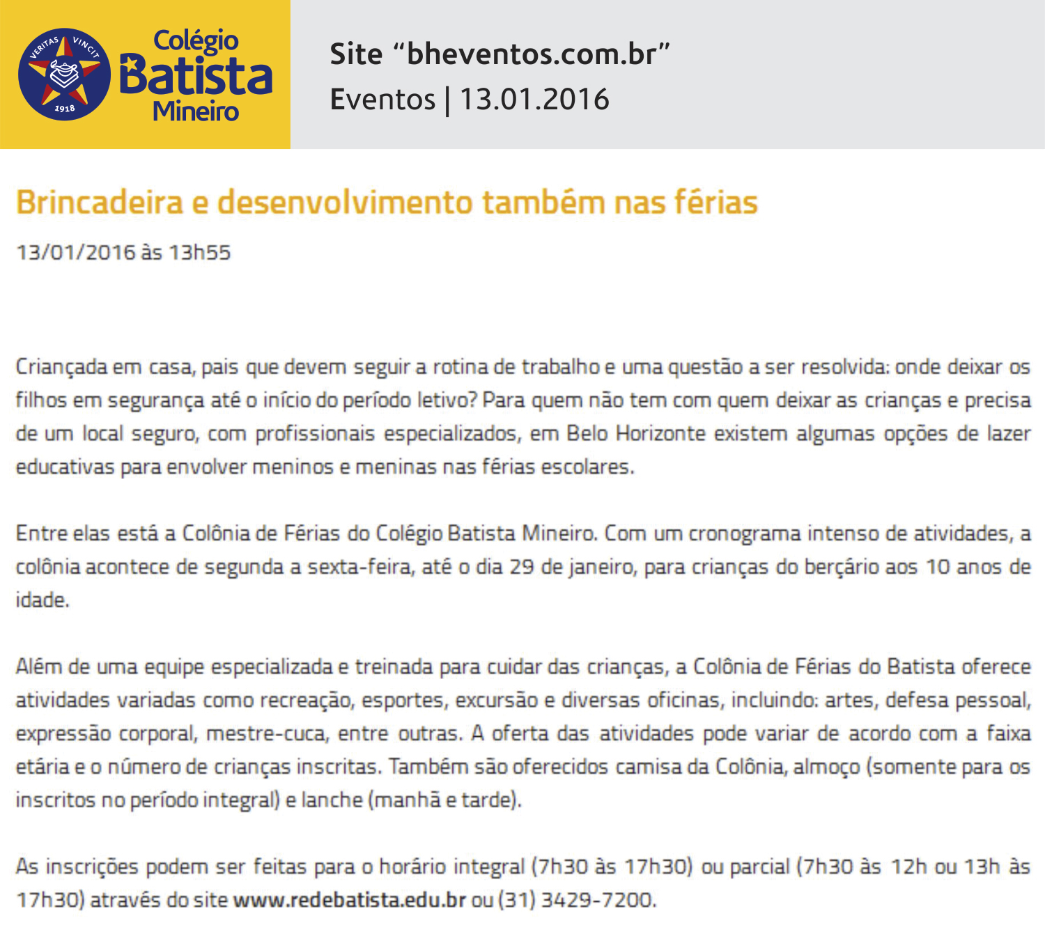 Brincadeira e desenvolvimento também nas férias (Eventos)