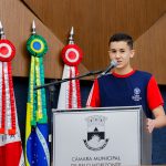 A solenidade foi conduzida pela vereadora e secretária-geral Marcela Trópia (Novo), que destacou a relevância do projeto, compartilhando sua própria experiência no Parlamento Jovem. “Esse tipo de iniciativa forma cidadãos mais conscientes e engajados, preparados para contribuir com a sociedade”, ressaltou a parlamentar, representando o presidente da Câmara, Gabriel Azevedo (MDB).