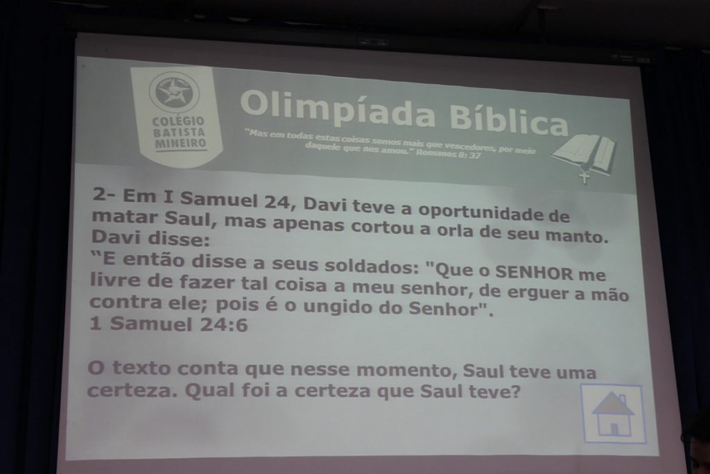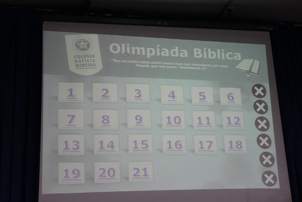 Com o intuito de dinamizar e estimular os alunos a estudar e aprender mais sobre a palavra de Deus, de forma espontânea, a Capelania do Colégio Batista Mineiro realizou entre os dias 6 e 18 de outubro uma Olimpíada Bíblica para os estudantes do Ensino Fundamental II.