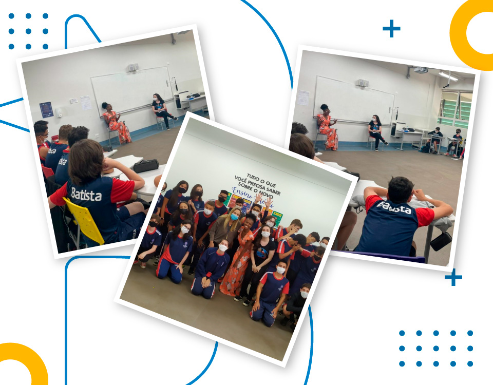 Atividade dos estudantes do 9º ano da Unidade Alphaville contou com a participação da ex-estudante do Batista Flora Ngunga