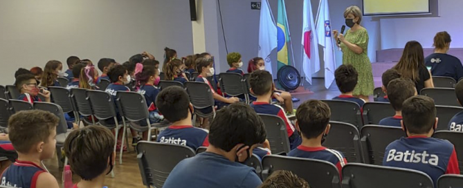 O tema abordado pela profissional foi “No Batista, nada de ‘BBB’: bullying, briga e brincadeira sem graça”. Diante de um tema sério, atual e delicado, Fátima tratou do assunto reforçando virtudes como respeito, responsabilidade, empatia, solidariedade, generosidade e altruísmo.