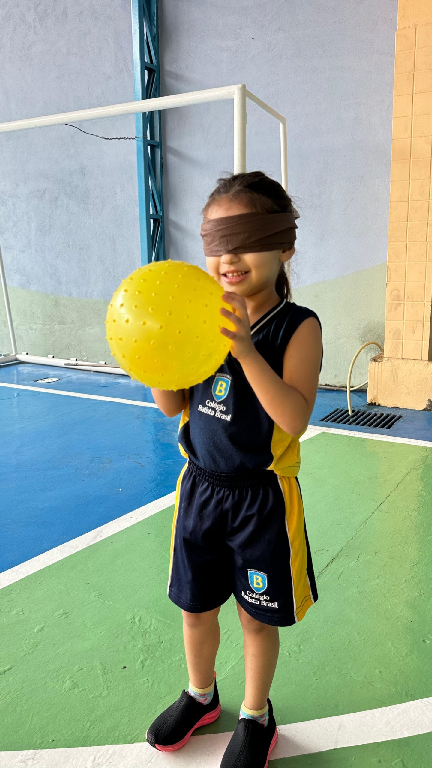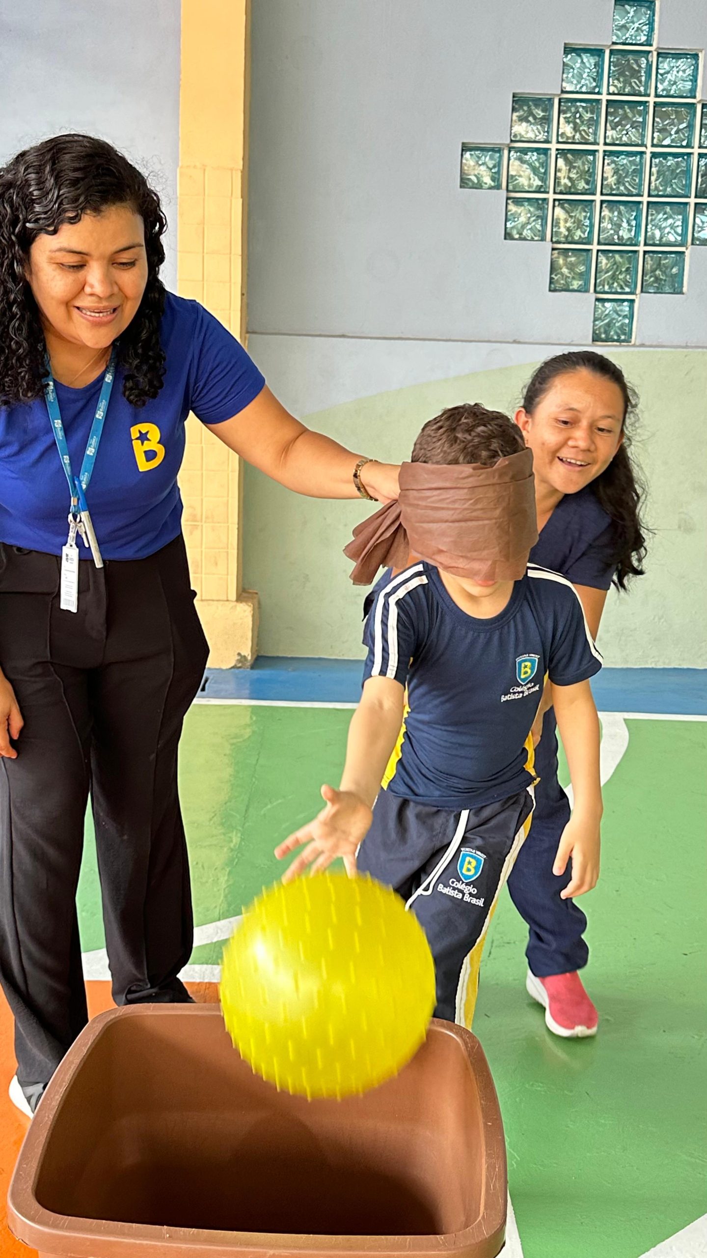 Assim, a professora de Educação Física do Colégio Batista Brasil Manaus Suellen Marinho planejou uma aula de inclusão para os estudantes da Educação Infantil e o Ensino Fundamental – Anos Iniciais.