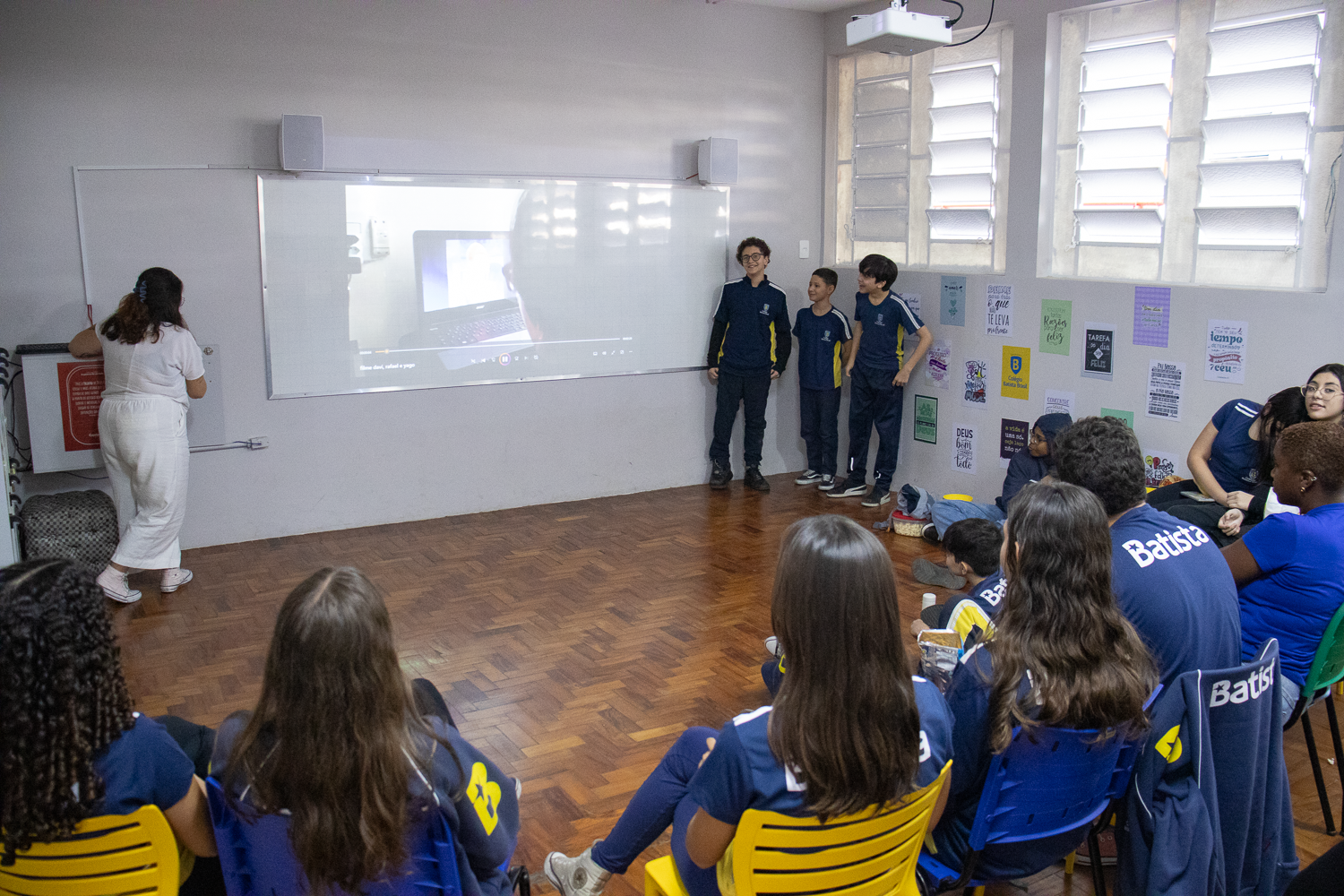A aula de Produção de Textos no componente curricular de Redação, Literatura e Língua Portuguesa do Colégio Batista Brasil Volta Redonda se destacou pela criatividade e inovação. Os estudantes do 7º ano assumiram o papel de roteiristas, passando por todas as etapas da criação de um vídeo, do planejamento à execução e edição.