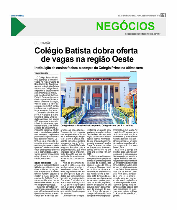 Estudante do Colégio Batista Brasil é destaque em matéria do Estadão