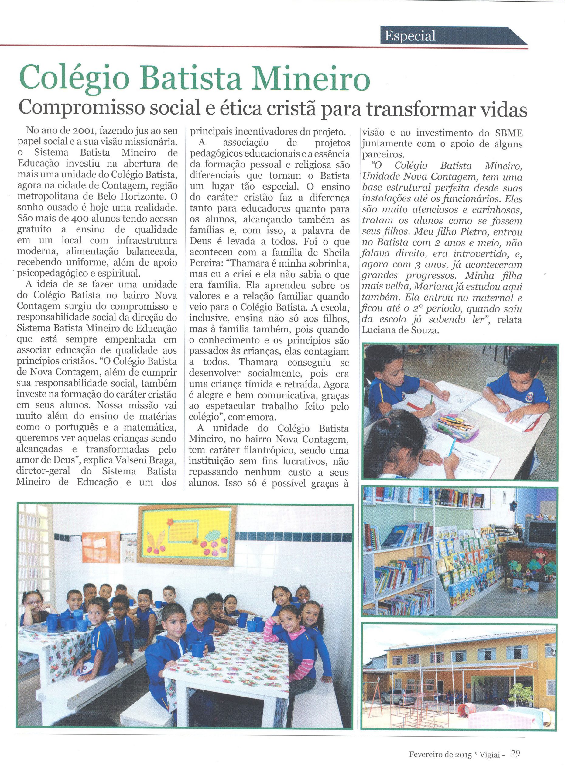 Colégio Batista Mineiro – Compromisso Social e ética cristã para transformar vida (Revista Vigiai)