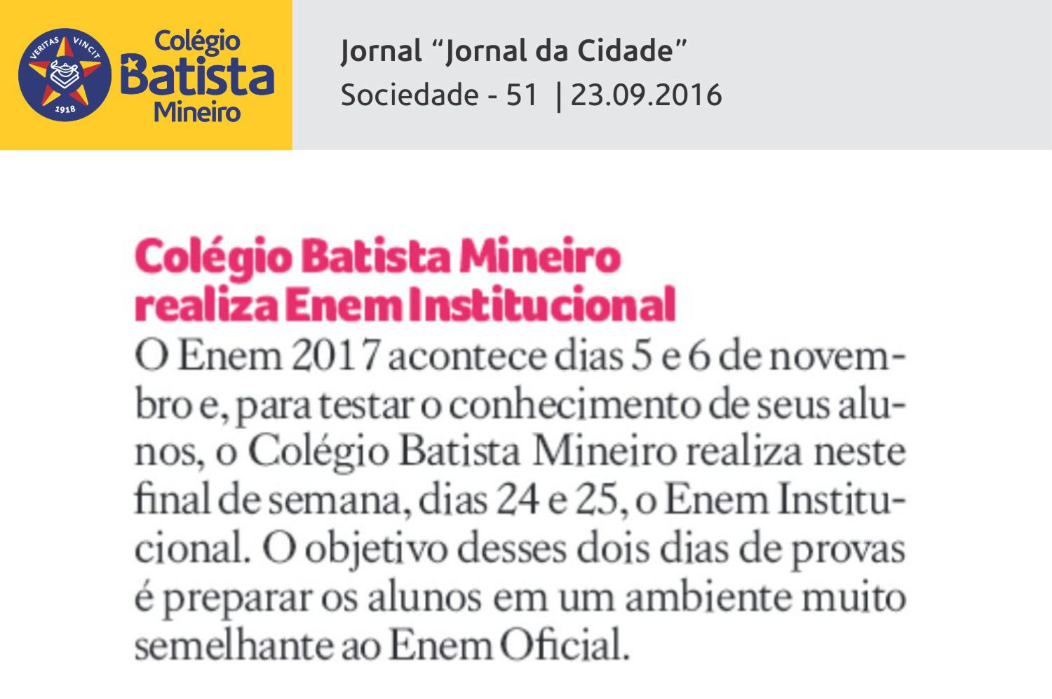 Colégio Batista Mineiro realiza Enem Institucional (jornal ‘Jornal da Cidade’)