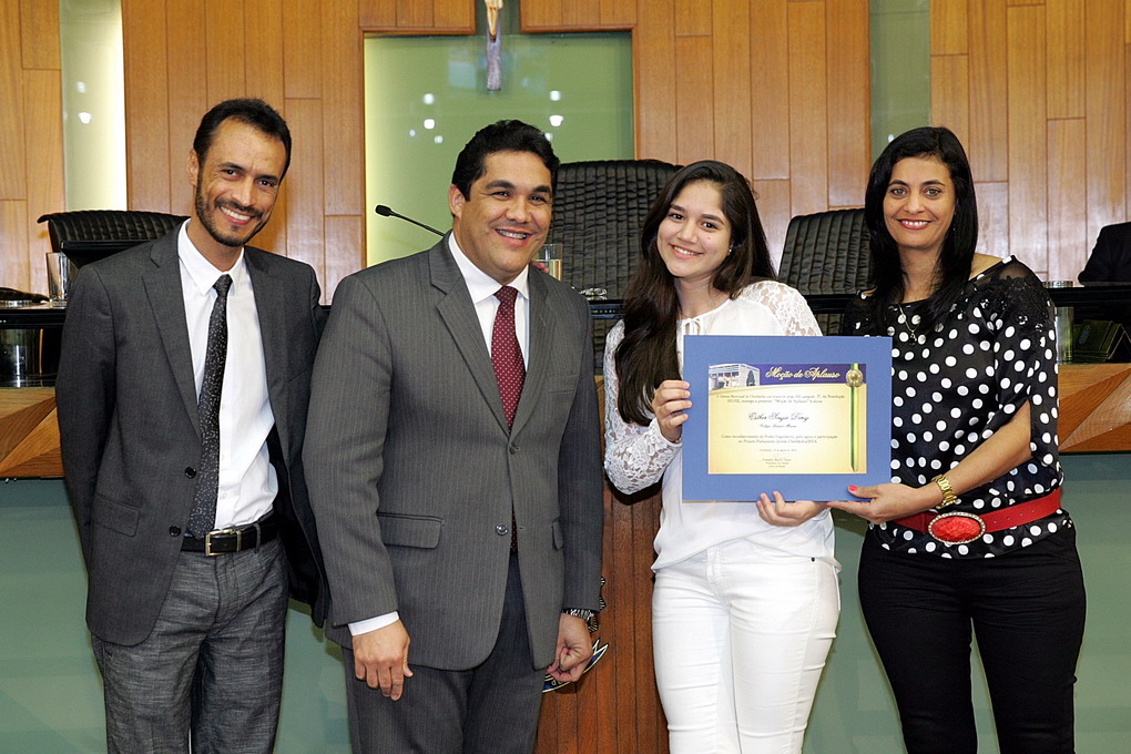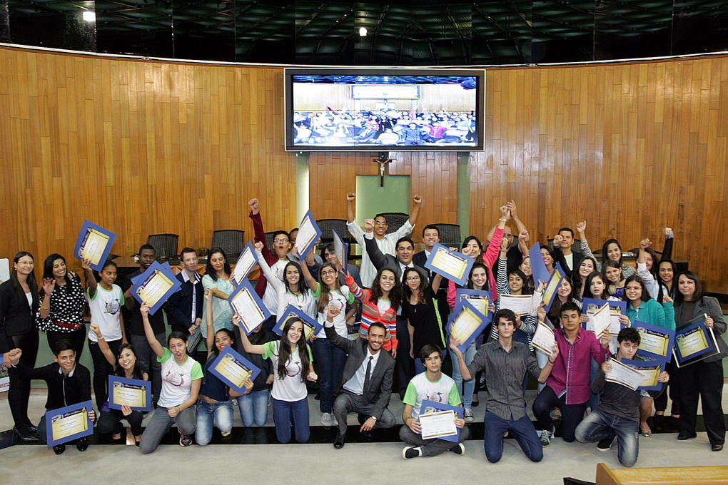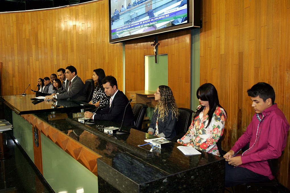 Na terça-feira, dia 19 de agosto foi encerrada a etapa municipal do Parlamento Jovem (PJ). Foram entregues certificados e Moções de Aplauso aos participantes do projeto: entidades educacionais e representantes, monitores e alunos de escolas públicas e particulares. Participaram o Presidente da Câmara Municipal de Uberlândia, vereador Márcio Nobre, o Diretor da Escola do Legislativo Ezequias Souza Santos, a Coordenadora da Escola e do Parlamento Jovem Eliphelet Cristina Alves. A solenidade contou ainda com os representantes da Faculdade Católica de Uberlândia/PUC-MG, da ESAMC, do Colégio Nacional e Colégio Batista Mineiro, das Escolas Estaduais Juvenília Ferreira dos Santos e Parque São Jorge. Eles foram parceiros importantes para que o PJ, que começou em março, pudesse fazer parte do cotidiano de jovens de Uberlândia.