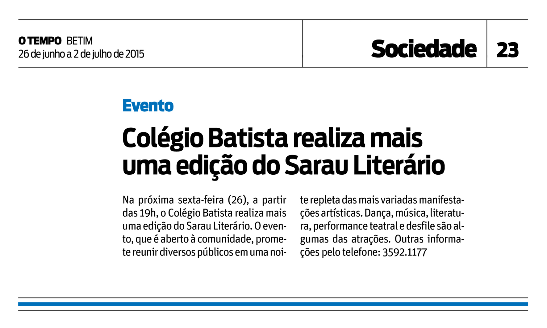 Colégio Batista realiza mais uma edição do Sarau Literário (Jornal O Tempo|Betim)