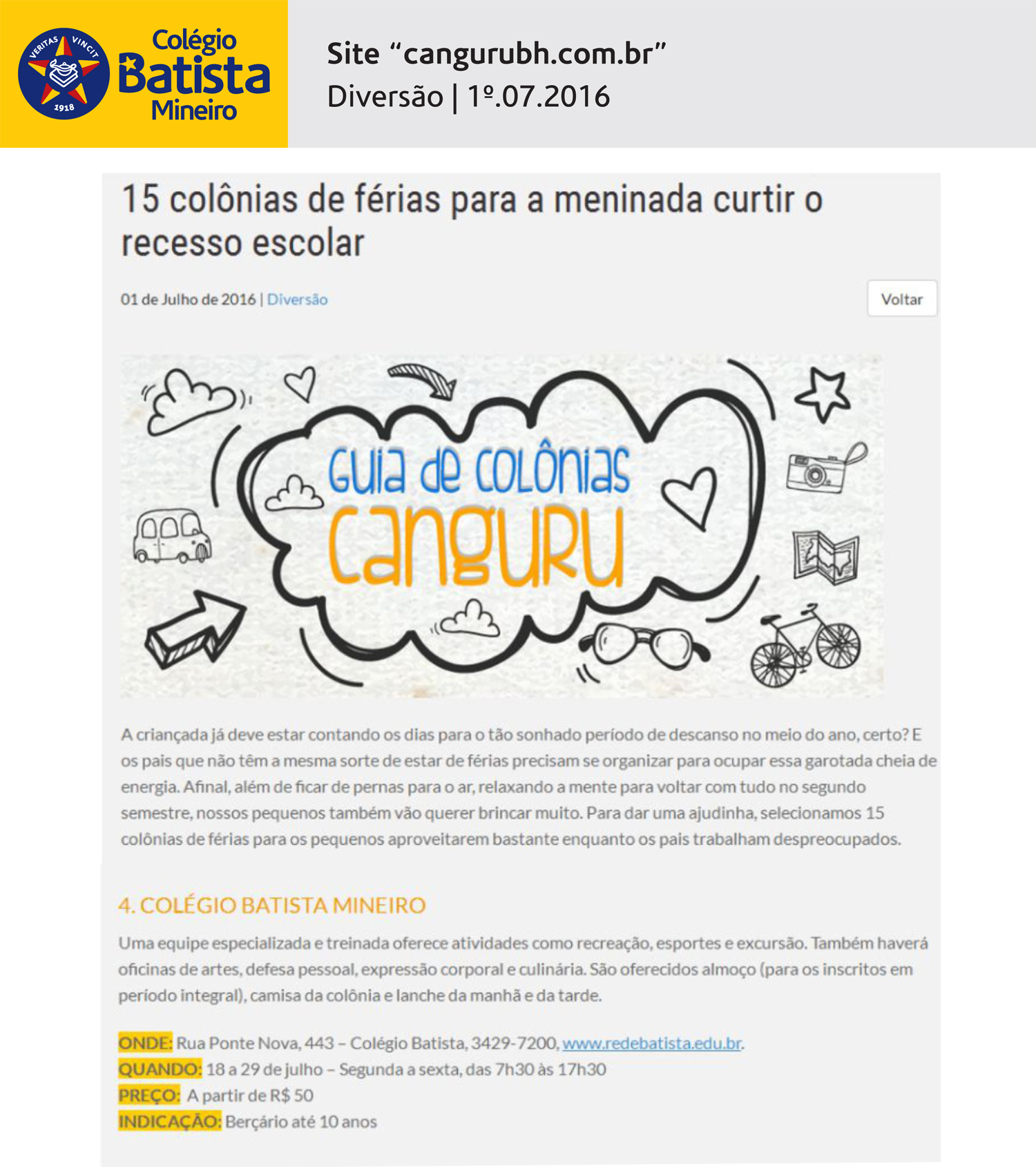 Colônia de Férias para a meninada curtir o recesso escolar (Ganguru)