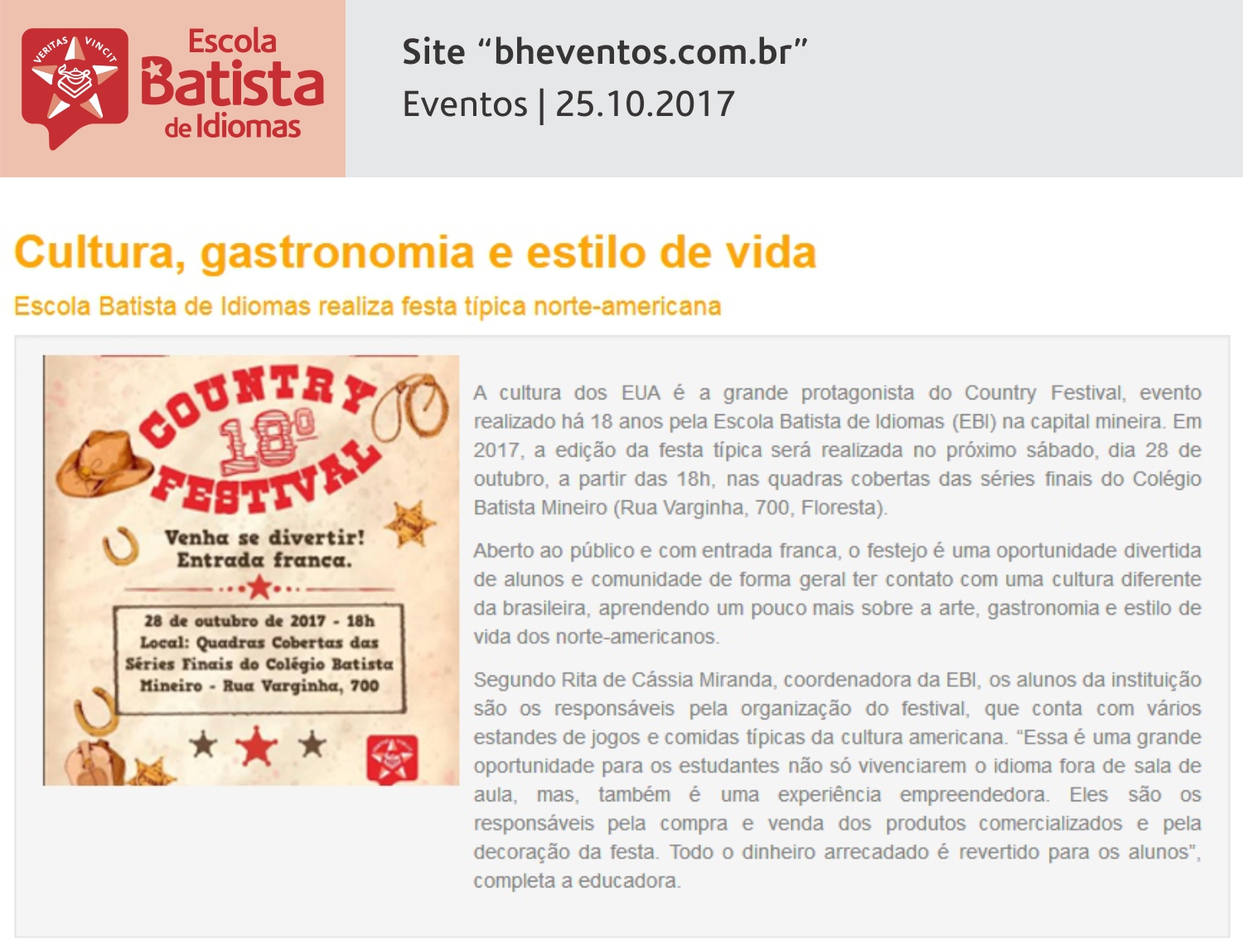 Cultura, gastronomia e estilo de vida (Site: bheventos.com.br)