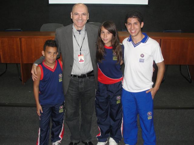 Os atletas Campeões da IV Copa Estudantil de Futsal ( infantil e juvenil) e da 23º Copa SESC foram recebidos, nesta quinta-feira, 17 de junho, pelo Diretor-Geral da RBE, prof. Valseni Braga, no auditório da Direção-Geral.