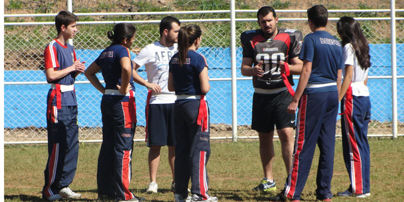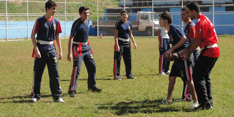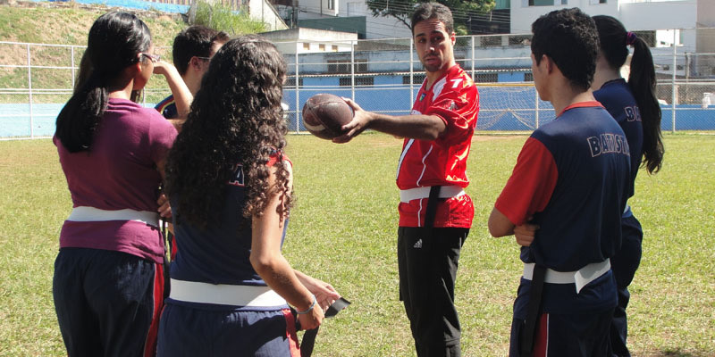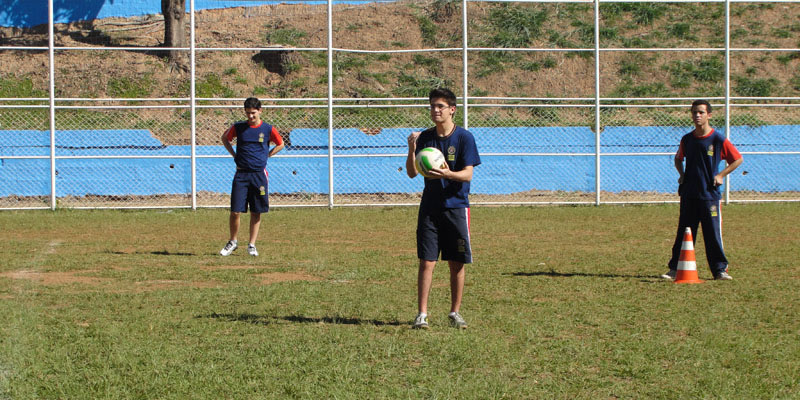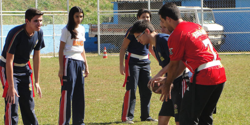 Os jogos aconteceram no Campão das Séries Finais, sob a supervisão do professor de inglês do EBI, Henrique Botelho. “Alinhamos a língua inglesa com o esporte americano resultando em uma aula prática significativa e descontraída para os nossos alunos”, observa.