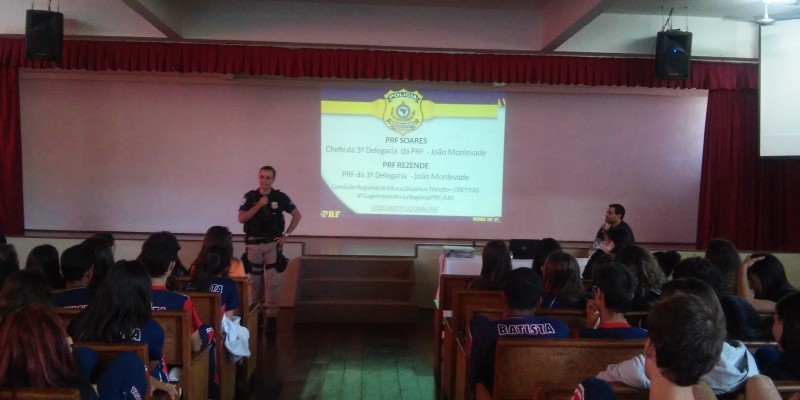 No dia 4 de agosto, terça-feira, o Colégio Batista Mineiro, Unidade Ouro Branco, recebeu a equipe da Polícia Rodoviária Federal (PRF), representada pelos policiais Ioannes Paulus e Francisco Soares que ministraram uma palestra sobre “Educação no Trânsito” para os alunos do 7º ano à 3ª série do Ensino Médio. “Nossos alunos tiveram a oportunidade de participarem desse momento ímpar e os palestrantes ficaram encantados com a receptividade da escola e com a participação dos alunos na palestra Educação de Trânsito e Prevenção de Acidentes”, afirma os colaboradores do Batista.