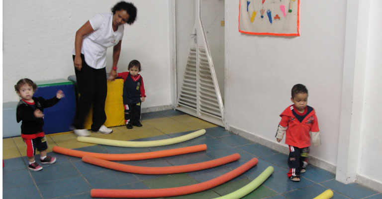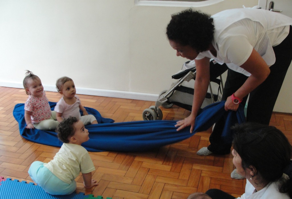 Na rotina da criança, entre troca de fraldas, banho, papinha e soninho, chega a professora de educação física com a estimulação psicomotora.