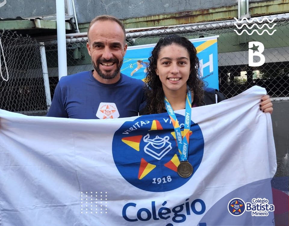 Nos Jogos Escolares de Belo Horizonte, a nadadora Esther Fernandes, estudante do 7º ano do Ensino Fundamental, disputou 50 m livre, 100 m livre e 100 m costas, conquistando 2 títulos e um vice-campeonato na modalidade.