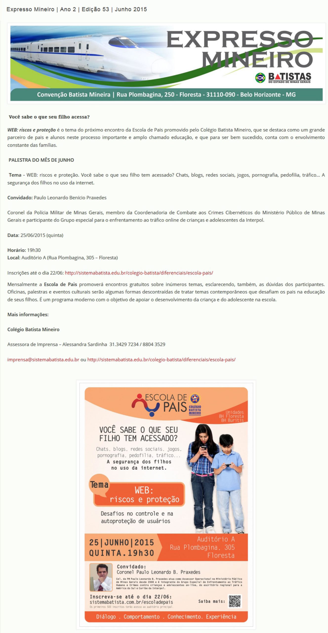 Escola de Pais: Web, riscos e proteção (Expresso Mineiro)