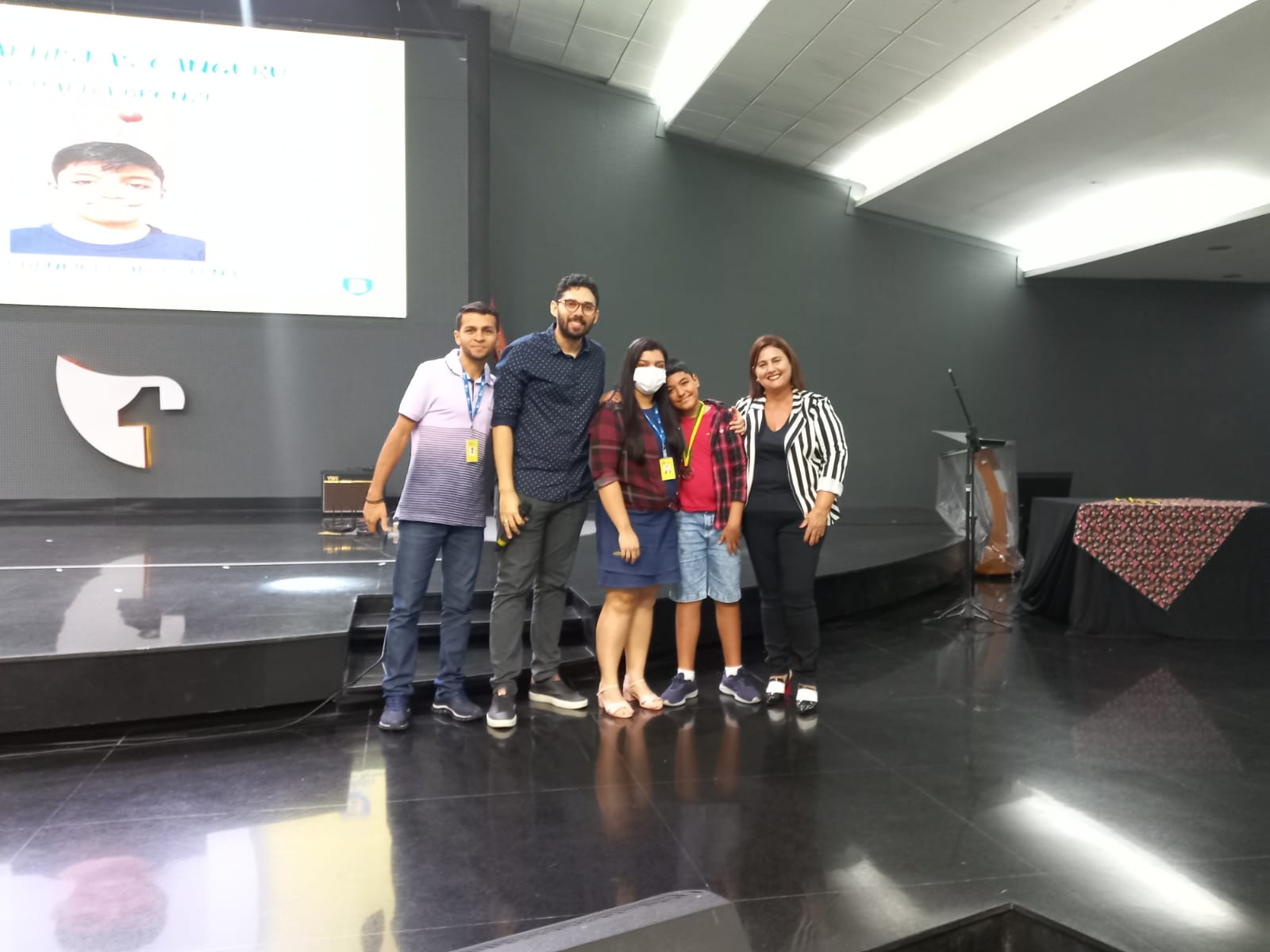 - Estudante Sara e sua família acompanhada pela diretora Sandra Coelho, professor Cadhimiel e coordenação pedagógica durante premiação.