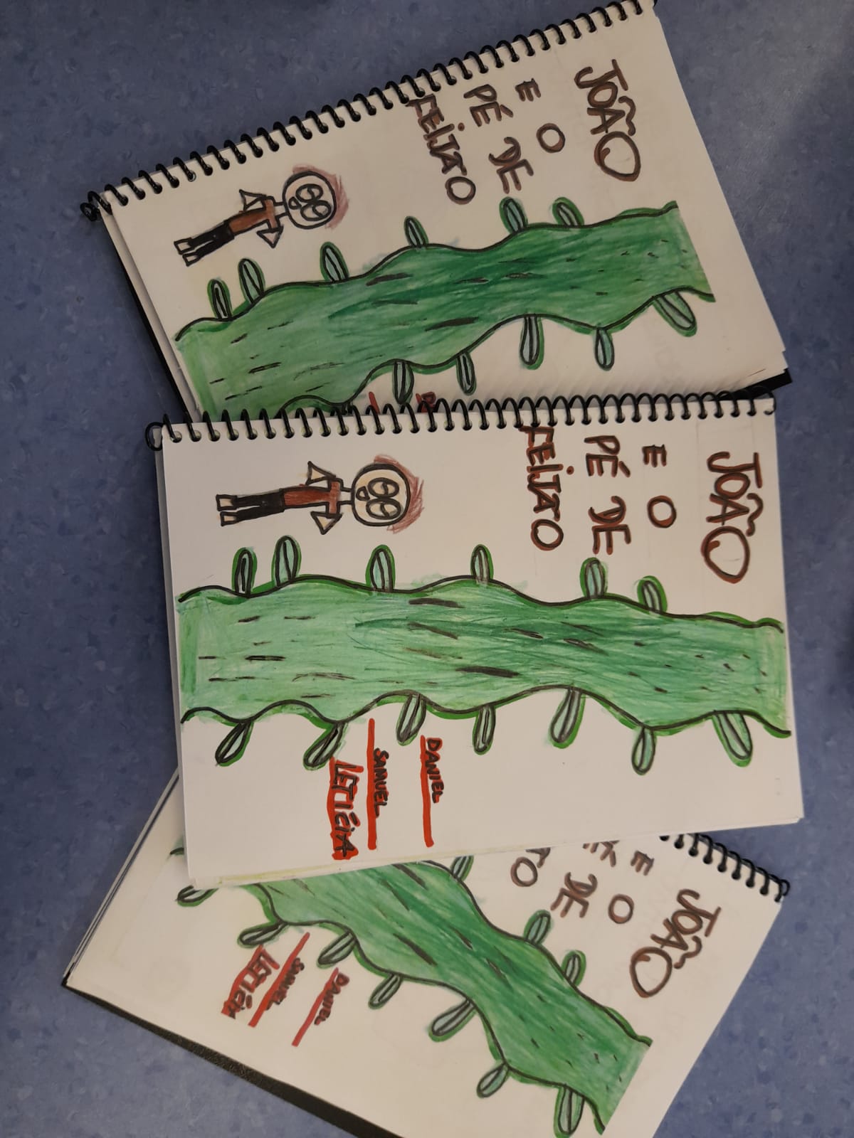 Com base nessa história, a professora da Educação Infantil Daisy Luna convidou os estudantes (turma do Infantil 5) da Unidade de João Pessoa a reescreverem o conto “João Pé de Feijão”, por meio de uma atividade coletiva. Usando a imaginação, a criatividade e o trabalho em equipe, as crianças conseguiram concluir seu primeiro livro. De acordo com a Daisy, essa atividade favorece o aprofundamento dos estudantes em uma prática já desenvolvida ao longo do ano: a reescrita. “Traz a ideia de que, quanto mais oportunidade de escrever e refletir a linguagem, melhores escritores serão”, acrescenta.