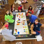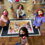Ao som de música clássica e com papel kraft e muitas cores de tintas, as crianças se divertiram e deixaram a criatividade fluir. Segundo Joyce, o objetivo é desenvolver a habilidade artística, a concentração e a imaginação. “O intuito foi trazer ao conhecimento dos meninos as possibilidades das cores, dos movimentos abstratos, e conversamos sobre outros tipos de movimento dentro da arte. Misturamos todo o processo de conhecimento com a musicalização”, menciona.