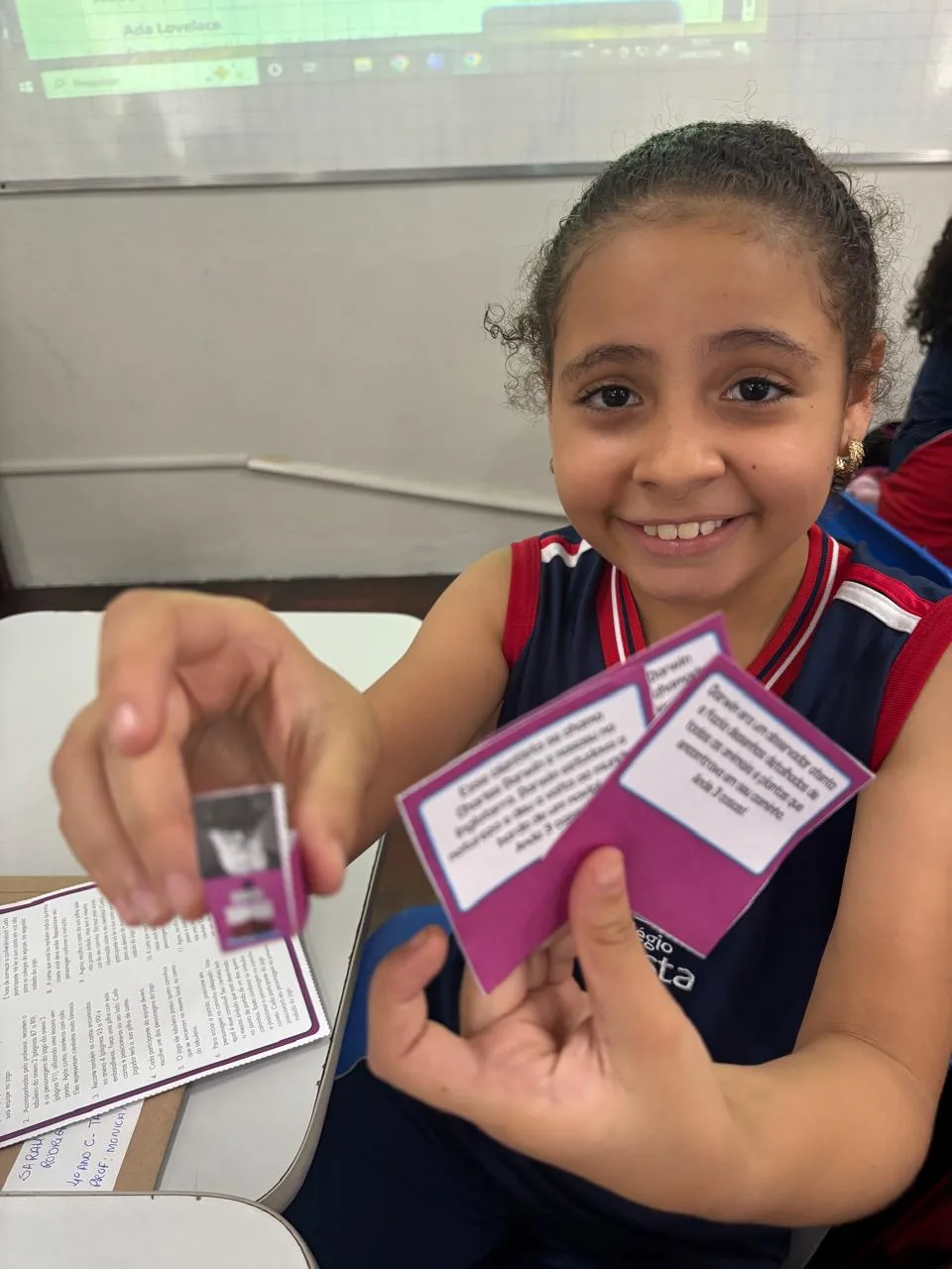 Para Bernardo, a experiência foi tão natural que quase passou despercebida como aula: “Aprender sobre os cientistas foi muito legal! Uma aula sobre cientistas que nem parecia aula. Acho ótimo que a professora dispõe essas atividades em forma de jogo, contou.