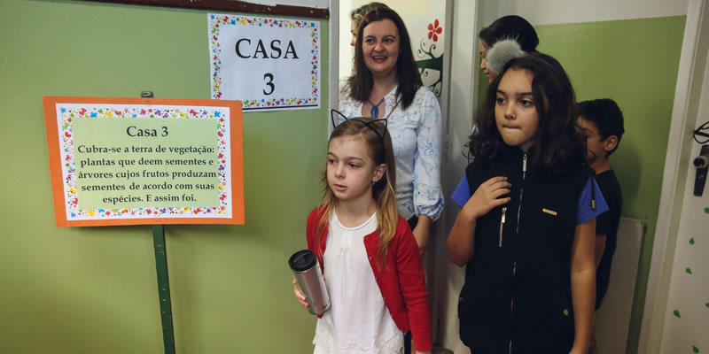 Salas de aulas transformadas em casas que encenam páginas de livros. E foi caminhando pelo jogo da trilha que pais, familiares, alunos e toda a comunidade escolar conheceram e vivenciarem o talento criativo de Deus, e a criatividade da criatura, através da Feira do Livro que trabalhou com os alunos o tema “Da criação ao Criador: criatividade em jogo”.