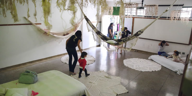 Salas de aulas transformadas em casas que encenam páginas de [...]
