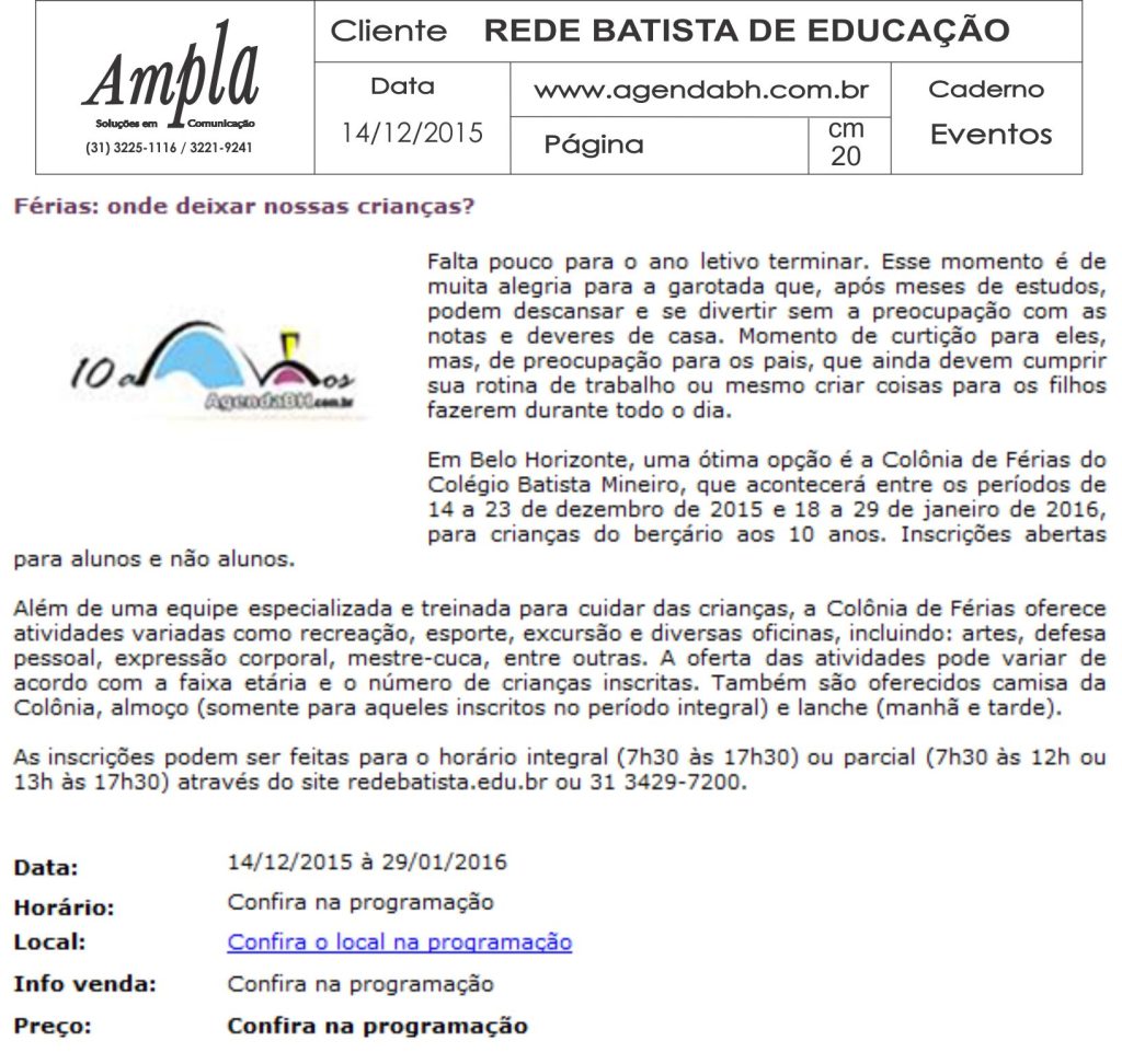 Férias: onde deixar nossas crianças? (Agenda BH)