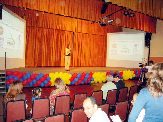 Professores, colaboradores e a diretoria da Rede Batista de Educação, além de alunos e familiares encheram o auditório das Séries Finais em Belo Horizonte, ontem (2/9), para o lançamento do novo Uniforme do Colégio Batista e a Campanha de Matrícula e Rematrícula 2010. Um momento de emoção para todos foram os testemunhos das mães de alunos do Batista, Sonaly Cunha R.Rezende e Ana Paula C.Lorenzato, que falaram do carinho e gratidão que têm pelo Colégio Batista Mineiro por todo o bem que a Escola tem feito aos seus filhos.