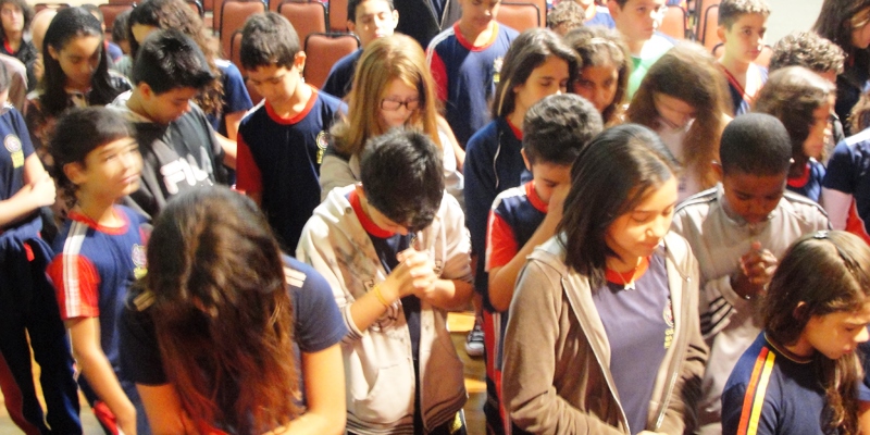 “Deus tem algo novo para gente seguir, ir em frente, ser campeão e refletir onde podemos parar para mudar, e dar uma reviravolta em nossa vida, permitindo que Deus nos ajude a enfrentarmos as dificuldades da vida”, explica Matheus Simões, Músico e Seminarista da Capelania das Séries Finais. Neste momento Matheus aproveita e faz um desafio: como tem sido a sua vida hoje, o seu relacionamento com a sua família, com a escola, com Deus? Ele convida os alunos a orar.