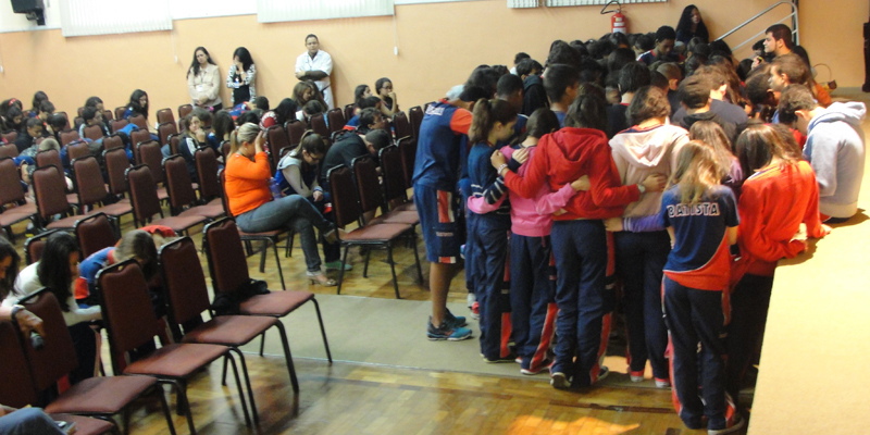 Muitos alunos levantam, vão à frente para orar, reconhecendo a necessidade de uma mudança de atitude na vida. E Simões reforça dizendo: “Esta é a maior e a mais importante escolha da sua vida. Ore e entregue a sua vida a Jesus Cristo”.
