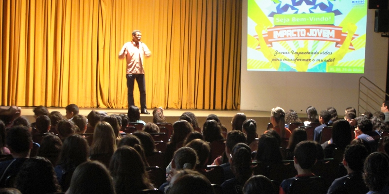 O Impacto Jovem foi realizado no auditório das Séries Finais, com o tema “Siga em frente e seja campeão.” O grupo Núcleo de Dança em Movimento do ministério IDE abriu o evento encenando o momento em que Jesus Cristo carrega a Cruz. A coordenadora Pedagógica da Capelania, Carolina G. Muniz Werneck, explica a intenção da apresentação, no sentido de que a cruz significa dizer não a nossa vontade e sim a vontade de Deus, “é esta a mensagem que queremos passar para os nossos alunos, para que eles entendam que Cristo é a razão de todo o nosso viver”, explica.