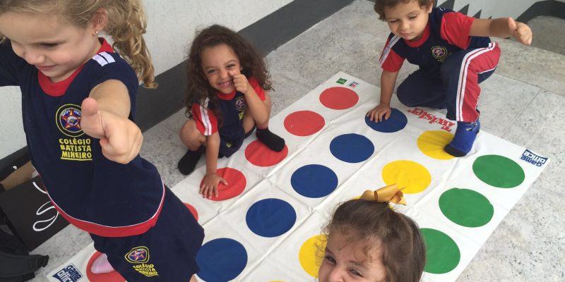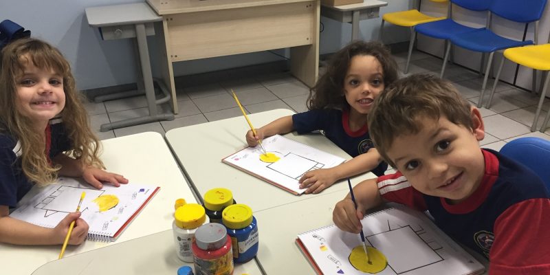 Durante as aulas do primeiro semestre a turminha participou de jogos e brincadeiras enquanto aprendia o conteúdo. Os alunos estudaram as cores através do jogo “Twist”, aprenderam os numerais cantando músicas, aprenderam os cômodos da casa confeccionando uma casinha de papelão, aprenderam alimentos e frutas através da culinária.