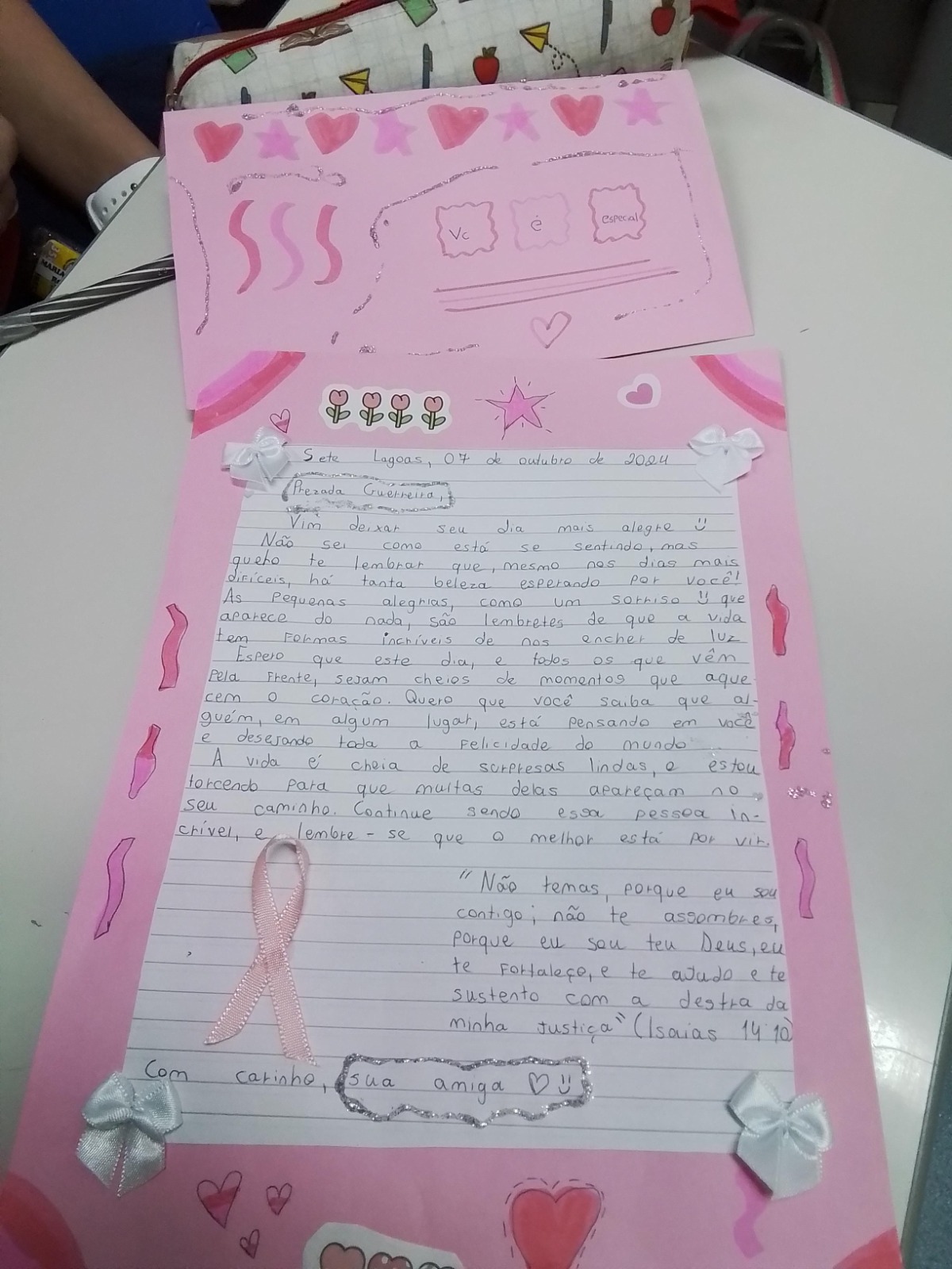 Nas cartas, os estudantes escrevem palavras de incentivo para os pacientes que enfrentam o desafio de vencer a doença, trazendo, principalmente, a certeza em Deus, que sempre age de forma soberana.