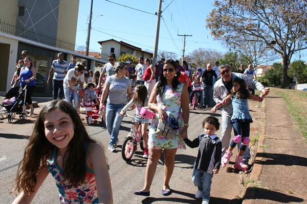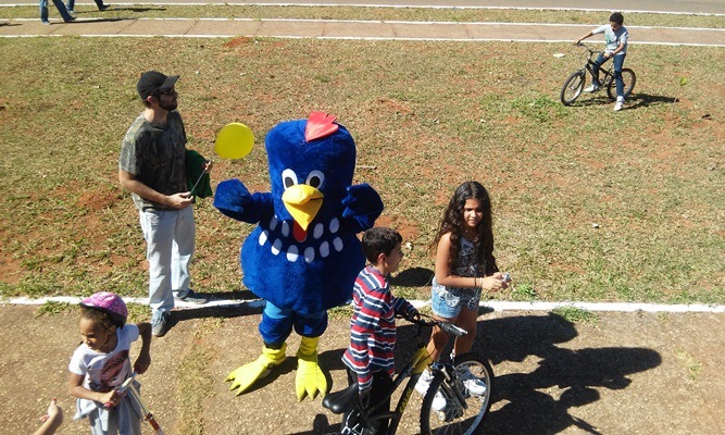 Durante todo o trajeto, contamos com o apoio de um carro de som com músicas alusivas às famílias. E para maior descontração ainda, tivemos a participação de uma colaboradora vestida de Galinha Pintadinha e as nossas professoras foram as nossas animadoras.