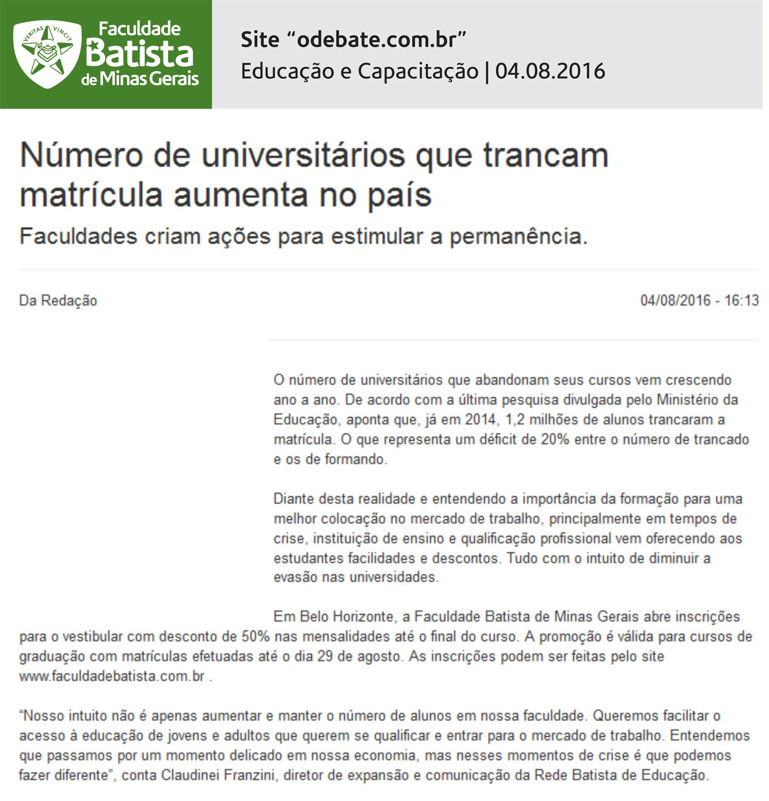 Número de universitários que trancam matrícula aumenta no país (O Debate)