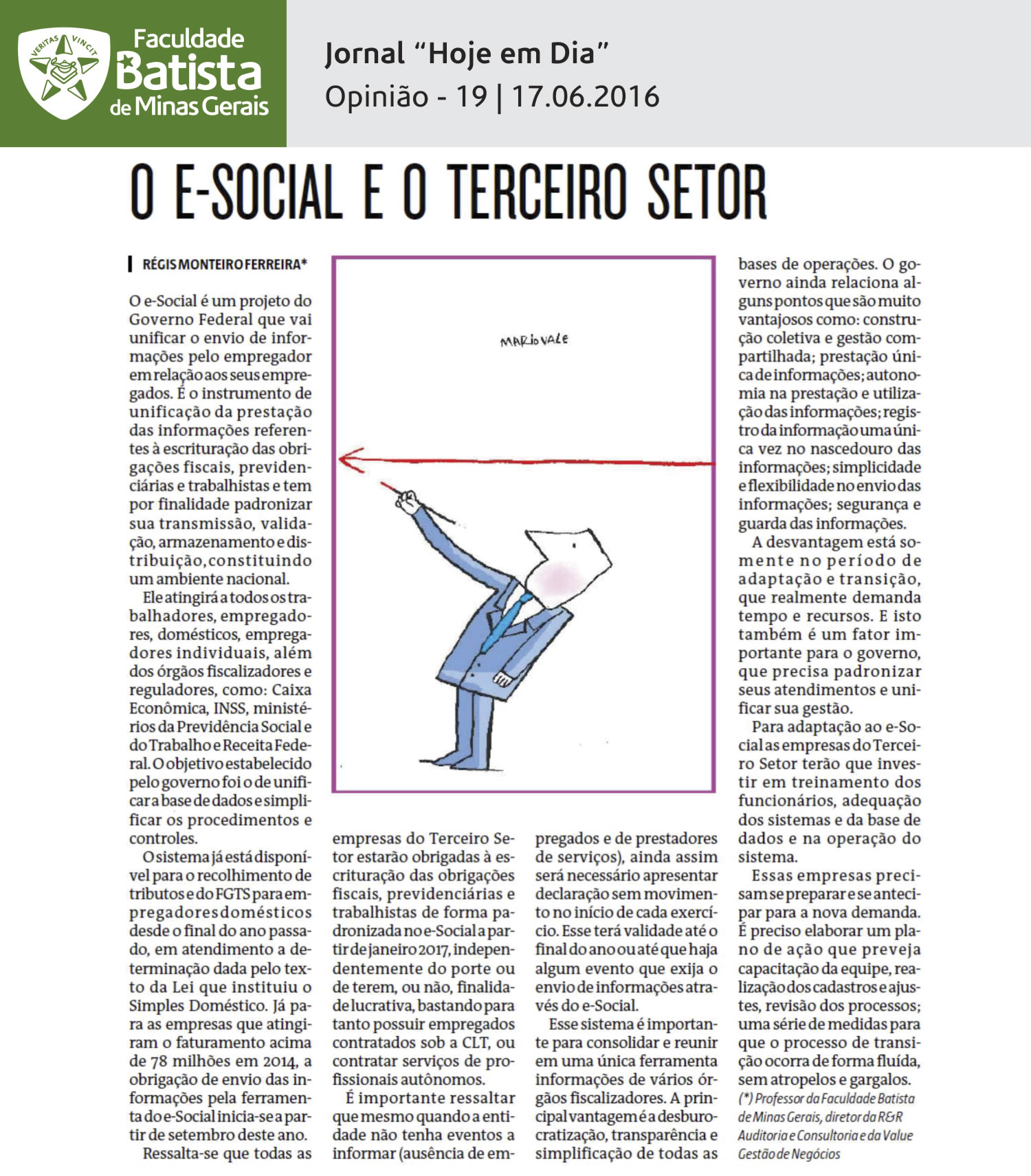 O e-social e o terceiro setor (Hoje em Dia)